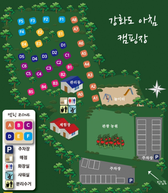 캠핑장 입구 관광농원에서 다양한 체험도 가능하고, 차량 5~10분 내외에 강화도의 대표 관광지와 맛집이 몰려 있어 캠핑과 여행을 동시에 즐기기 좋습니다.
