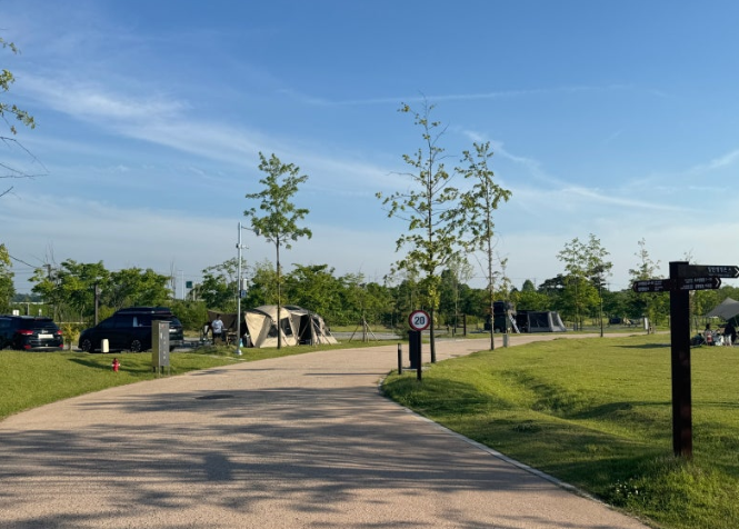 여러 번 방문하며 느낀 점은 캠핑장 전체가 넓고, 시설이 깨끗하며, 가족 친화적이라는 것! 잔디광장과 누리놀이터, 산책로, 미디어쇼 등 아이들이 신나게 뛰어놀 수 있는 공간이 많아 가족 캠퍼에게 특히 추천합니다. 저녁에는 노을이 정말 아름다워 산책로를 따라 걷는 것만으로도 힐링이 되었고, 밤에는 미디어쇼와 야경이 멋집니다.