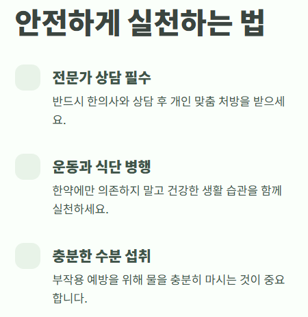 • 전문가 상담: 내 체질에 맞는 한방 처방을 받으면 효과가 더 좋아집니다.