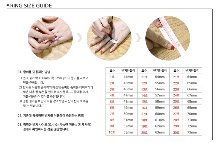 - 두꺼운 반지/넓은 밴드라면 +1호 – 두꺼운 실버 반지를 구매할 때는, 실측 호수보다 한 단계 크게 구매하면 더 편하더라고요.