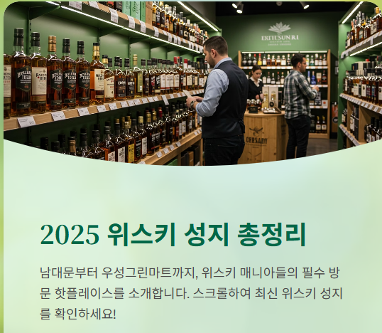 2025년 대한민국 위스키 트렌드의 중심, 위스키 성지들을 직접 방문해보세요. 다양한 라인업과 특별한 문화, 그리고 기다리는 새로운 한 병이 여러분을 맞이합니다!