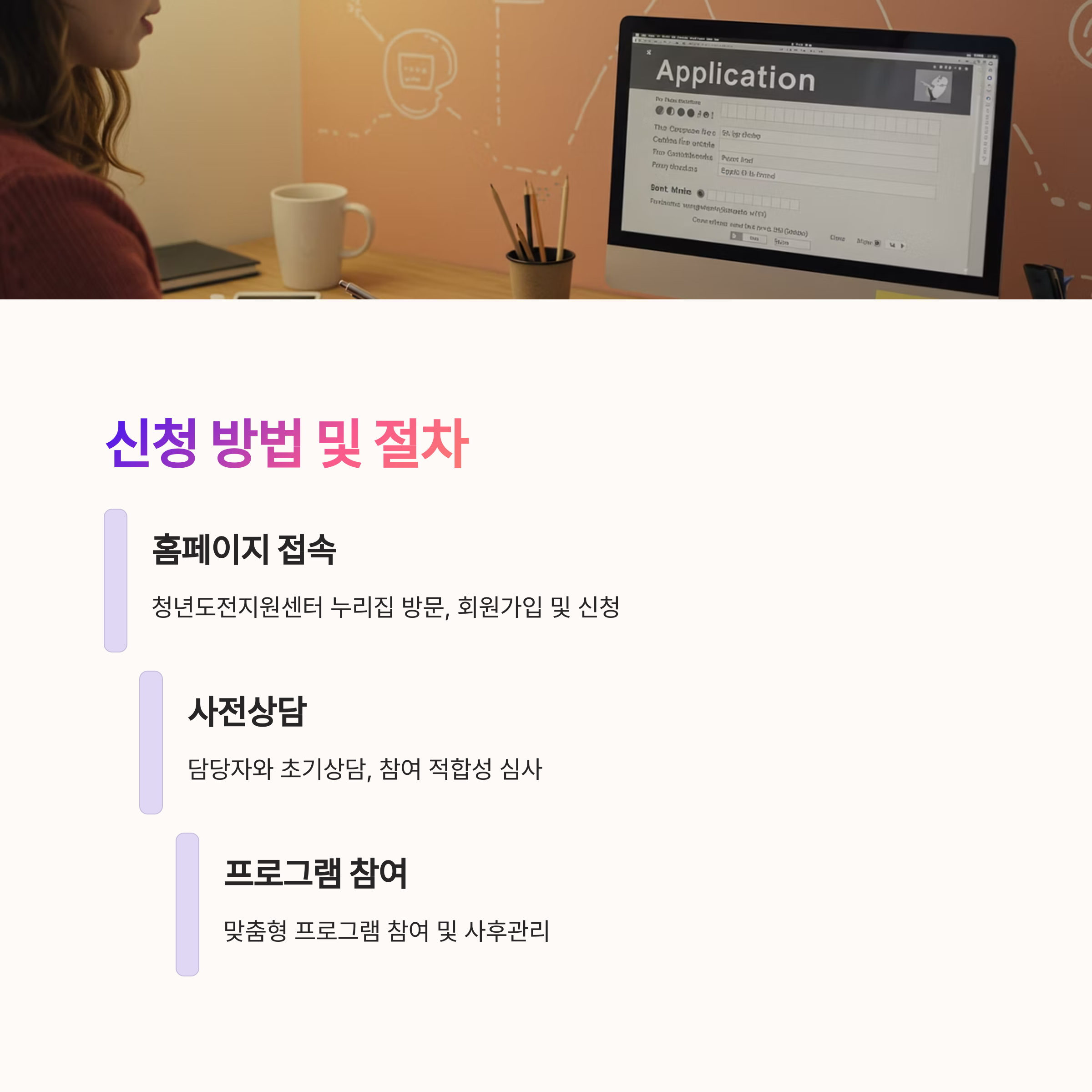 지역별 청년도전지원센터 또는 청년도전지원사업 공식 누리집 방문 후 회원가입 및 신청서 작성