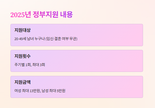 - 지원대상: 대한민국 20~49세 남녀(임신여부·결혼여부·자녀 관계없이 희망자 누구든 가능)