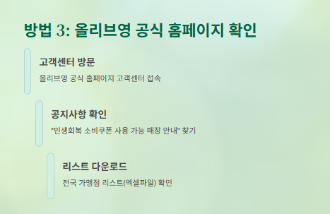 헛걸음 없이 내가 가려는 매장이 민생지원금 사용이 가능한 올리브영 가맹점인지 알 수 있는 3가지 확실한 방법을 소개합니다.