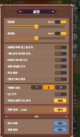 - 게임에 접속 후 메인화면 → 설정(톱니바퀴) 메뉴로 이동