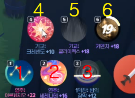 연주: 별의 소나타 (3번) 딜 주력기, 무드에 따라 1·2·3악장으로 세분화, 크레센도로 강화 시 무력화 타이밍까지 추가