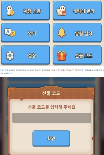 - [설정] → [선물 코드/쿠폰] 탭으로 이동