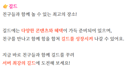 - 길드 던전, 이벤트 출석, 길드 마일리지 교환소 등 협력형/경쟁형 콘텐츠가 다양