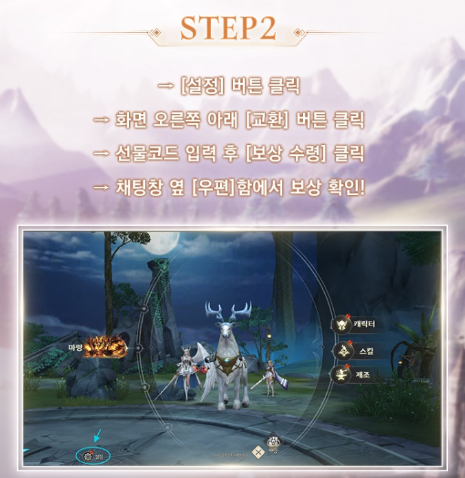 아키르 콜 오브 에시르 선물코드 교환방법 설명 이미지