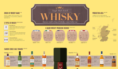 싱글몰트 위스키는 한 증류소에서 보리(몰트)만 단일 원료로 사용해, 최소 3년 이상 오크통에서 숙성시킨 다채로운 향과 풍미를 가진 프리미엄 위스키다. 같은 해, 같은 증류소에서 생산되더라도 원료·기후·숙성 등에 따라 맛이 다르며, "블렌디드"와 다르게 오롯이 '한 곳 고유의 개성'이 담겨 있다.