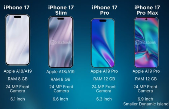 - 라인업 변화: 기존의 플러스(Plus) 모델이 사라지고, 에어(Air) 모델이 새롭게 추가됩니다. 플래그십(기본-프로-프로맥스) 3종 체제에 더 슬림하고 가벼운 에어로 선택지가 확장됩니다.